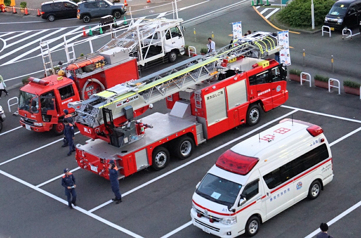 でもトップ画像のように、上からも緊急車両たちが見れました。