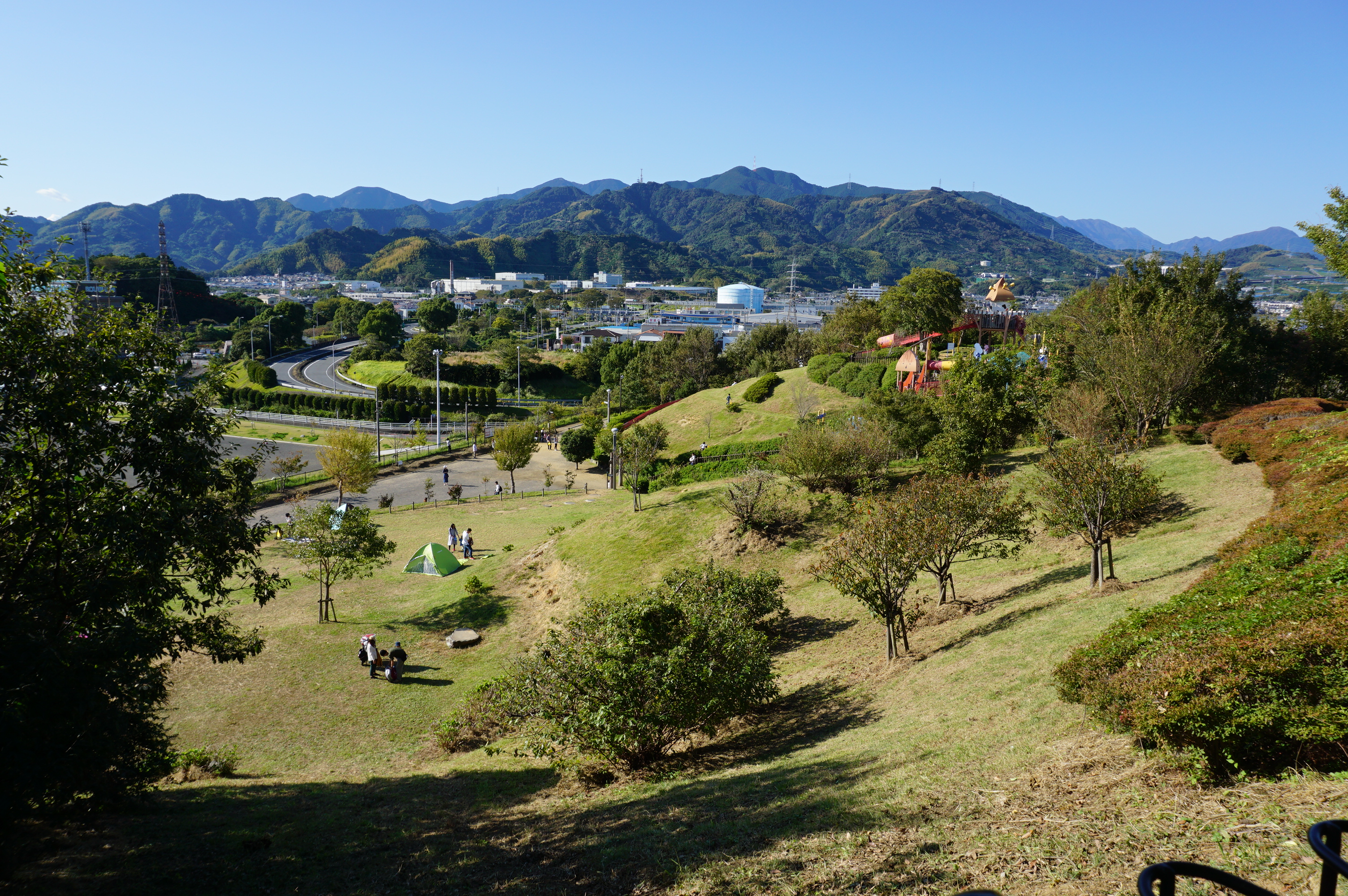 小山の合間に芝生広場があるかんじ、伝わりますかね。