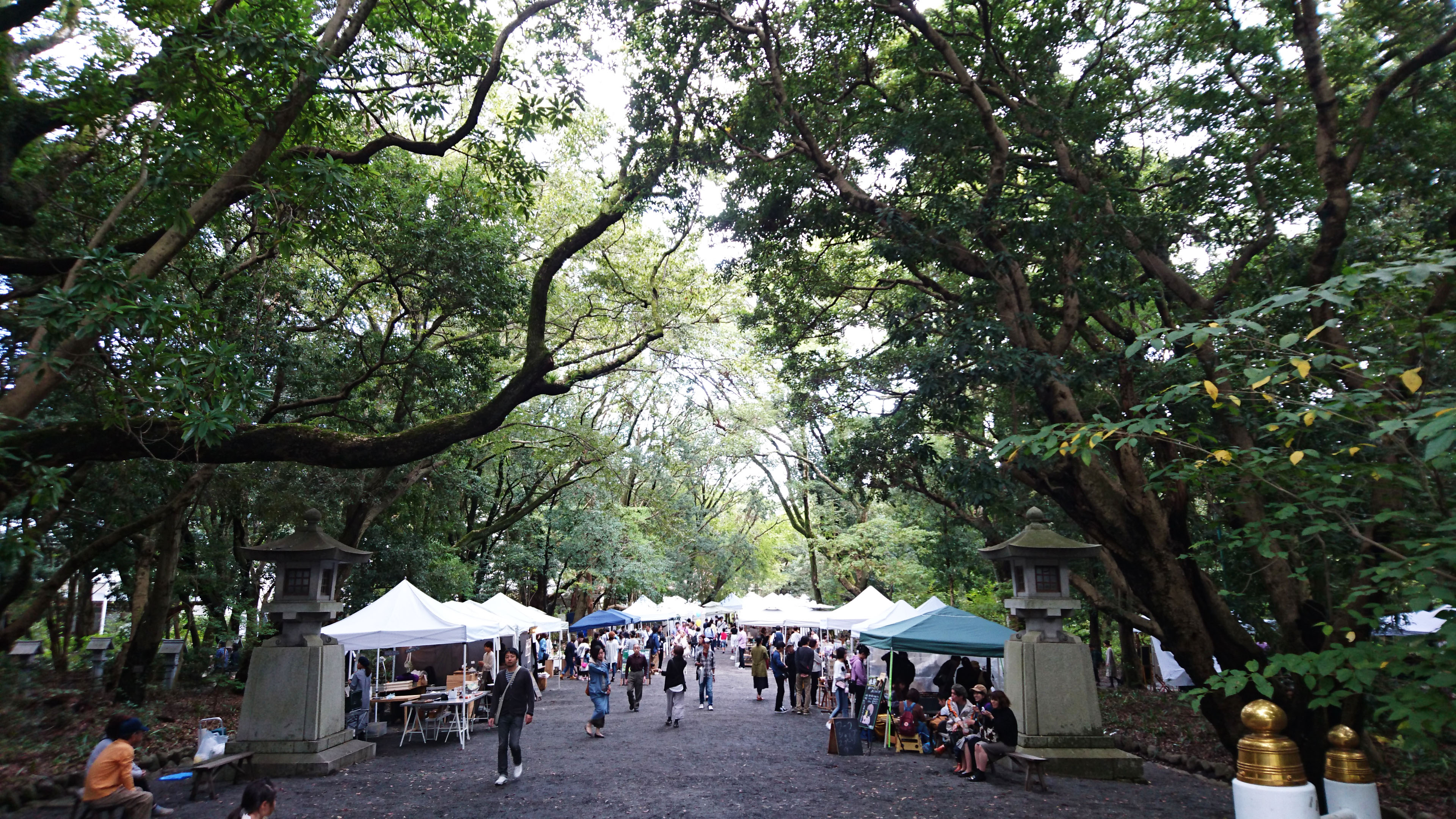 静岡縣護国神社の境内という開催地とマーケットの融合にあると思います。